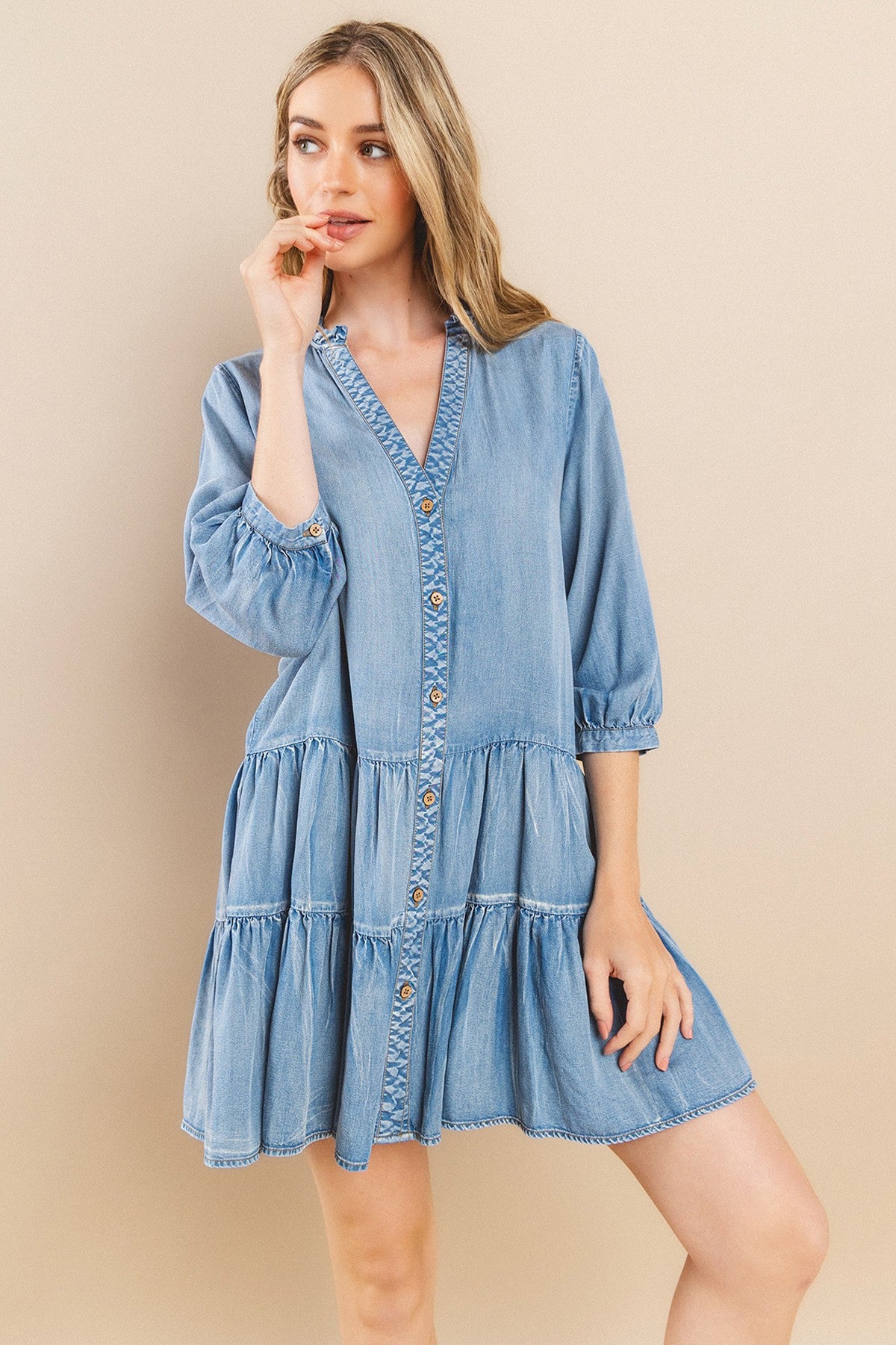 Button Down Baby Doll Denim Dress