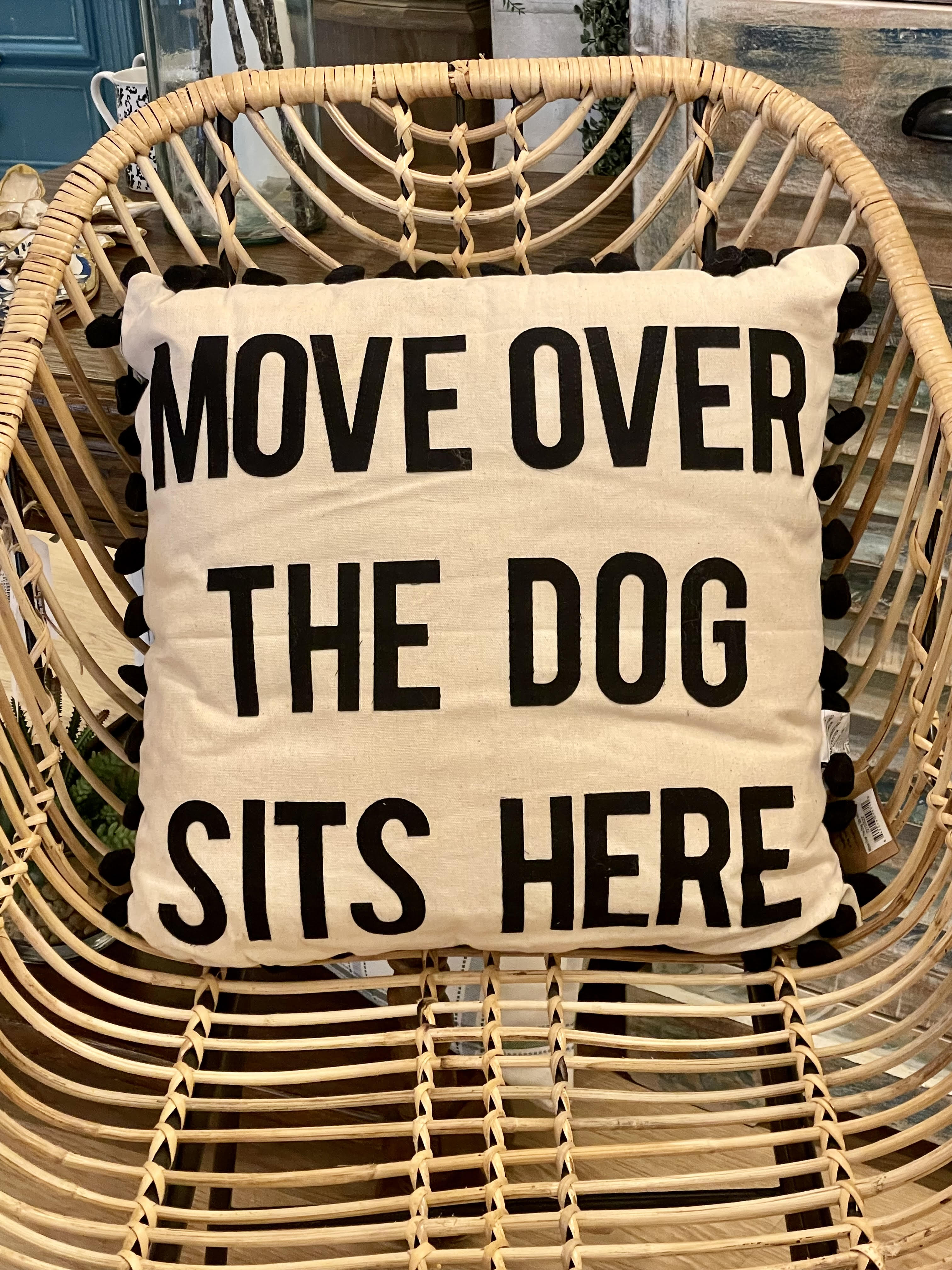 Move over the dog sits here palm, palm pillow. 28 x 28