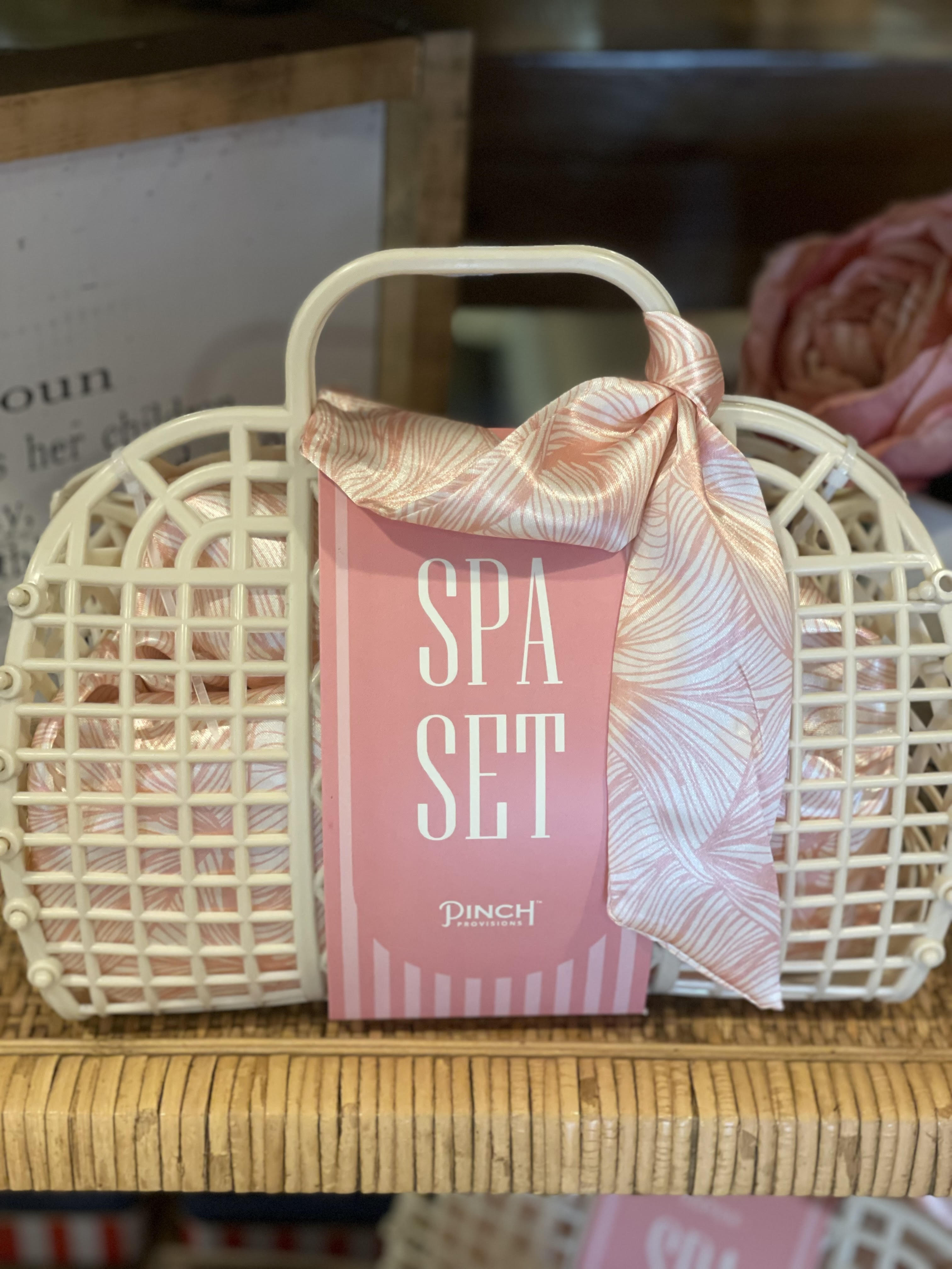GREAT GIFT ALERT! Super Spa Set are the ultimate "self-carryall". The ivory jelly tote features an inner drawstring bag containing the perfect deluxe assortment of 8 spa essentials: full-size ice roller, silk sleep mask, gua sha, exfoliating mitt, hair clip, shower steamer, scalp massager and silk scrunchie. Also available in Linen/Black and Periwinkle.